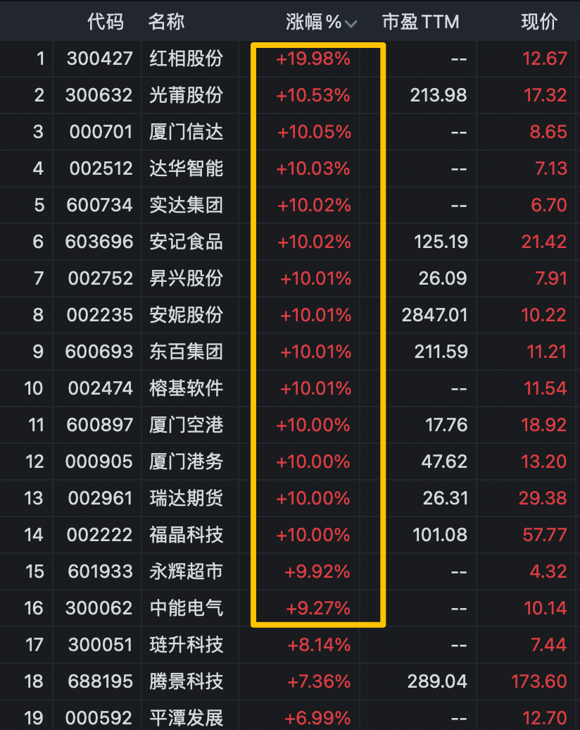 但是最近有一个板块赚钱效应非常好啊,他就是福建股,前几年海南板块表现非常差,一旦有利好就砸盘,但是福建板块这次很强势啊,上周就集体大幅上涨,今天这个板块又集体涨停了,很显然这个板块持续性还是非常强的,福建板块集体大涨背后主要的原因又3个利好驱动,首先我们复盘下福建板块的表现: