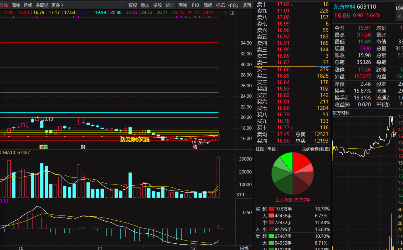 东方材料又来了,16.40不跌破明天就可以小仓玩玩,上方依次看16.7917.1