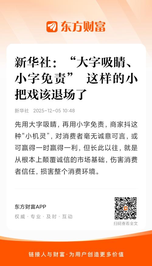先用大字吸睛,再用小字免责,商家抖这种“小机灵”,对消费者毫无诚意可言,或可赢得一时赢得一利,但长此以往,就是从根本上颠覆诚信的市场基础,伤害消费者信任,损害整个消费环境。