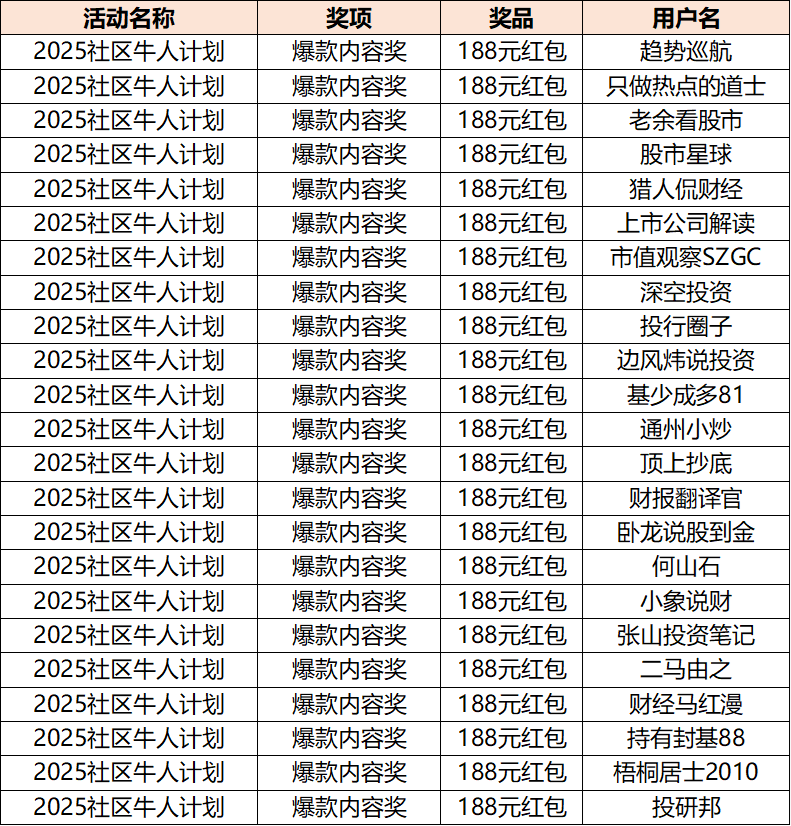 发布精彩观点、在东方财富社区与海量股友互动讨论,即有机会做社区牛人、瓜分万元现金和百万流量!快带话题#社区牛人计划#发布内容、分享投资经验、参与2025社区牛人计划吧!