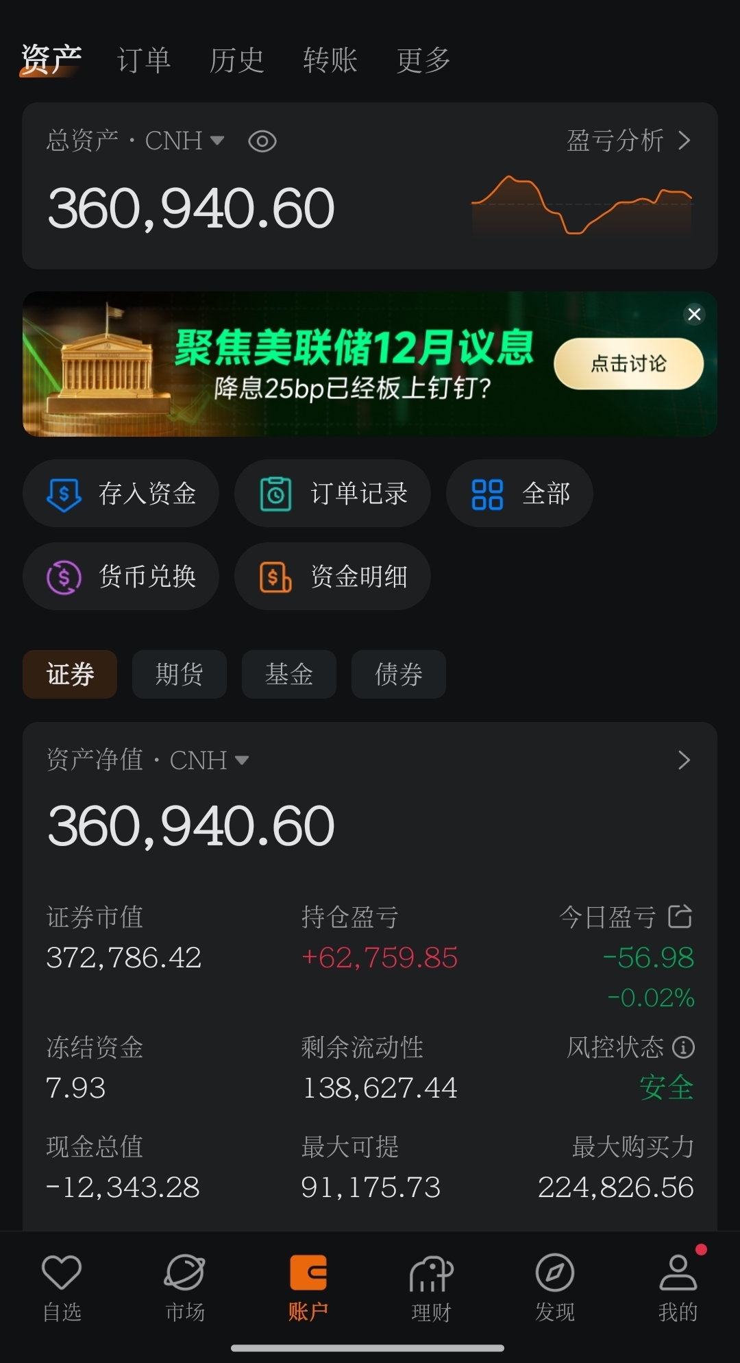 2025/12/1088.39万实盘亏光挑战,今日+1100,已亏1.61-0.