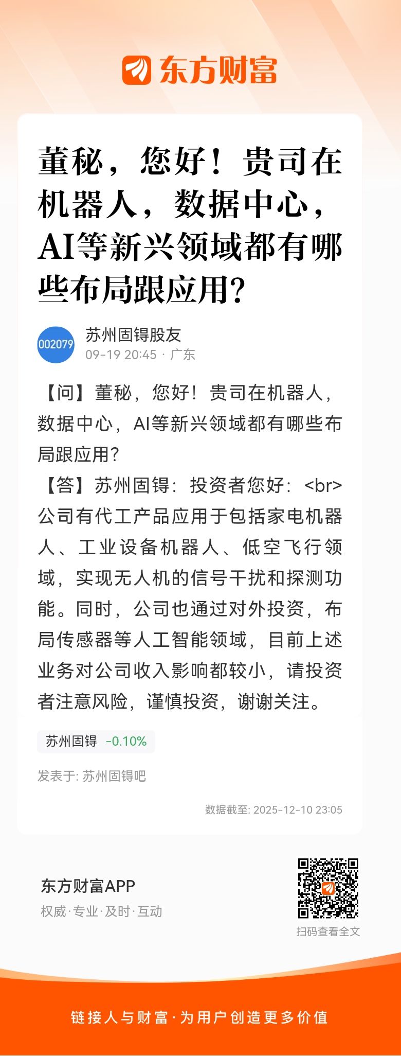 董秘,您好!贵司在机器人,数据中心,AI等新兴领域都有哪些布局跟应用?