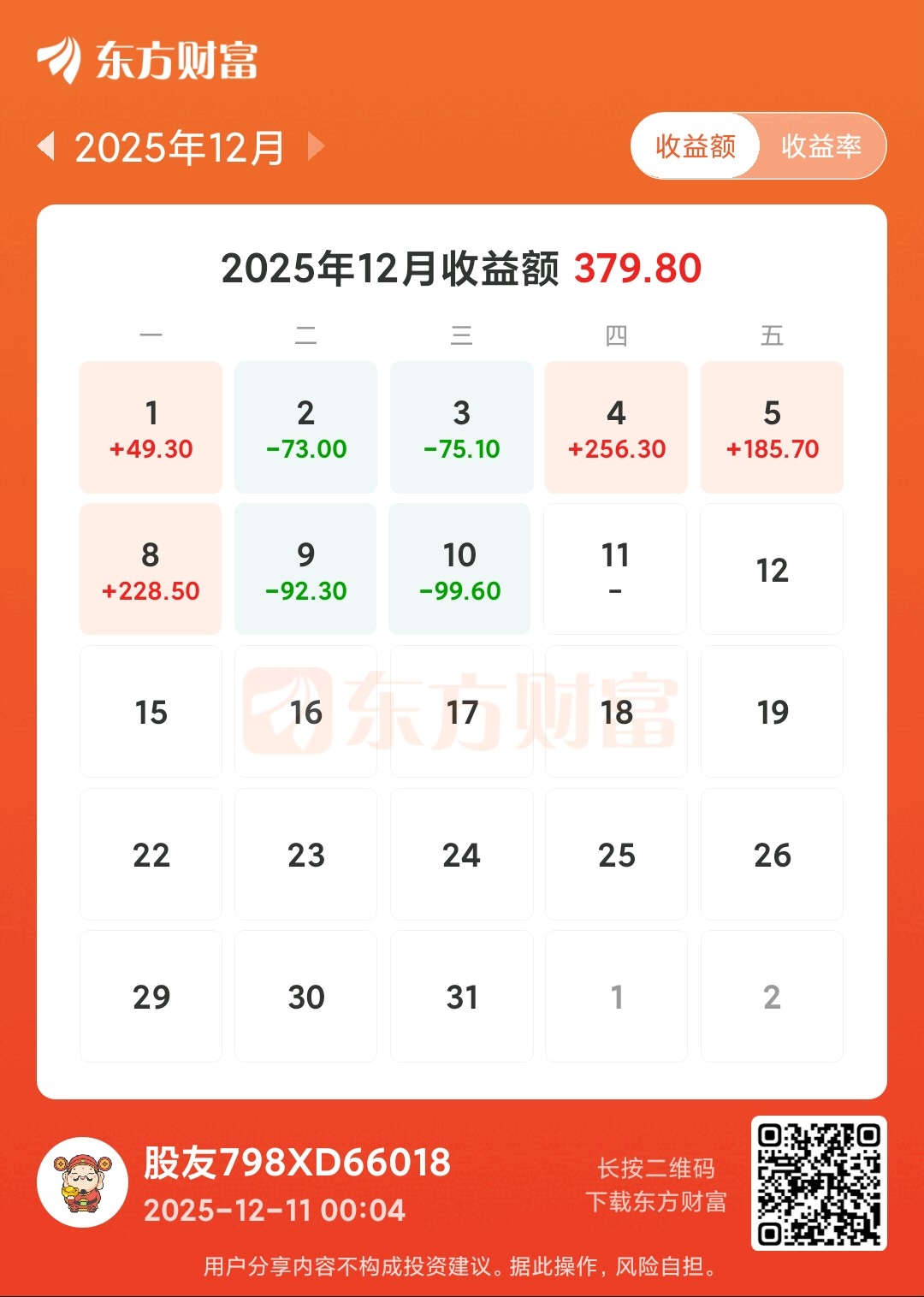 今天亏损99.60元