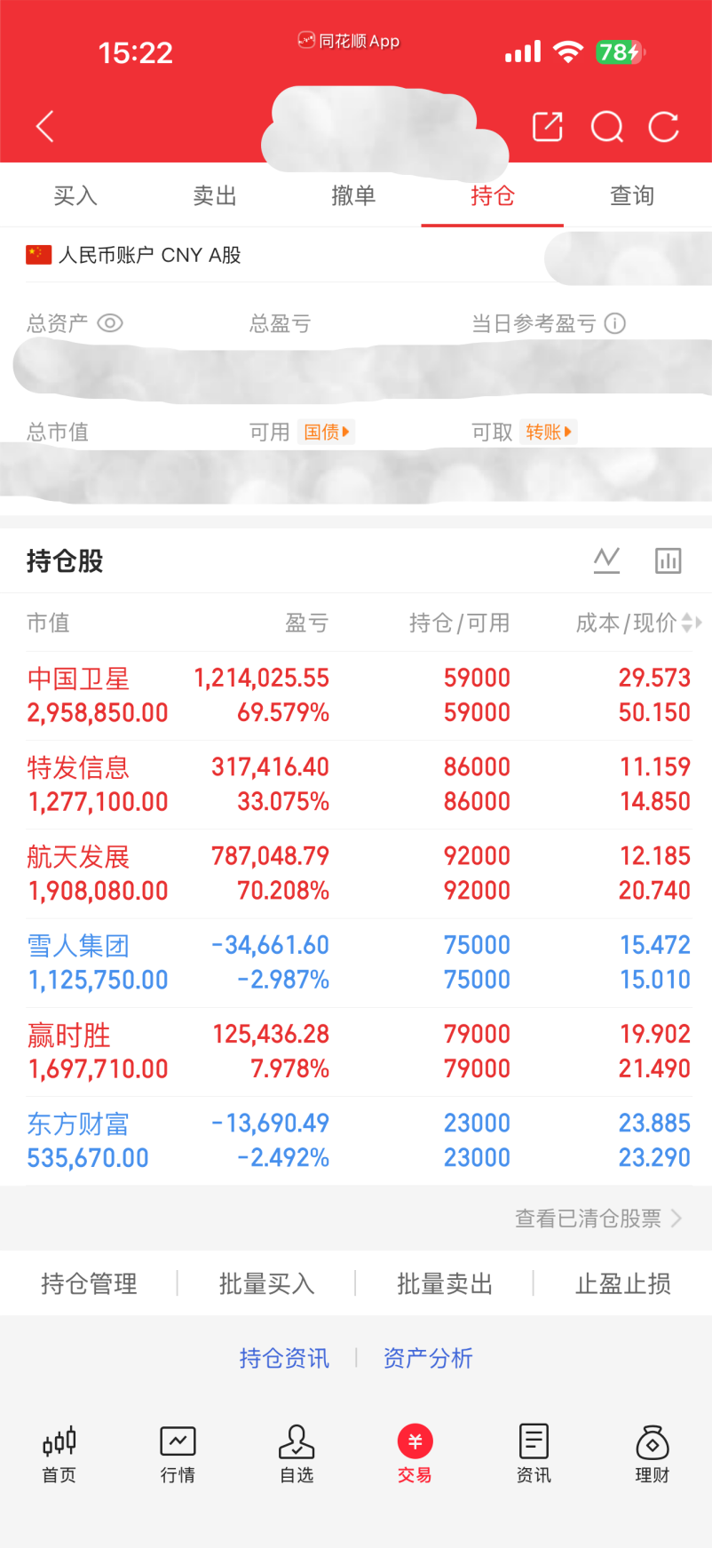 持仓详解:中国卫星、特发信息、航天发展、雪人集团、赢时胜、东方财富