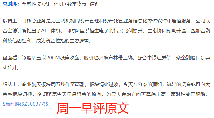 赢时胜:金融科技+AI一体机+数字货币。公司主营金融资产管理软件。
