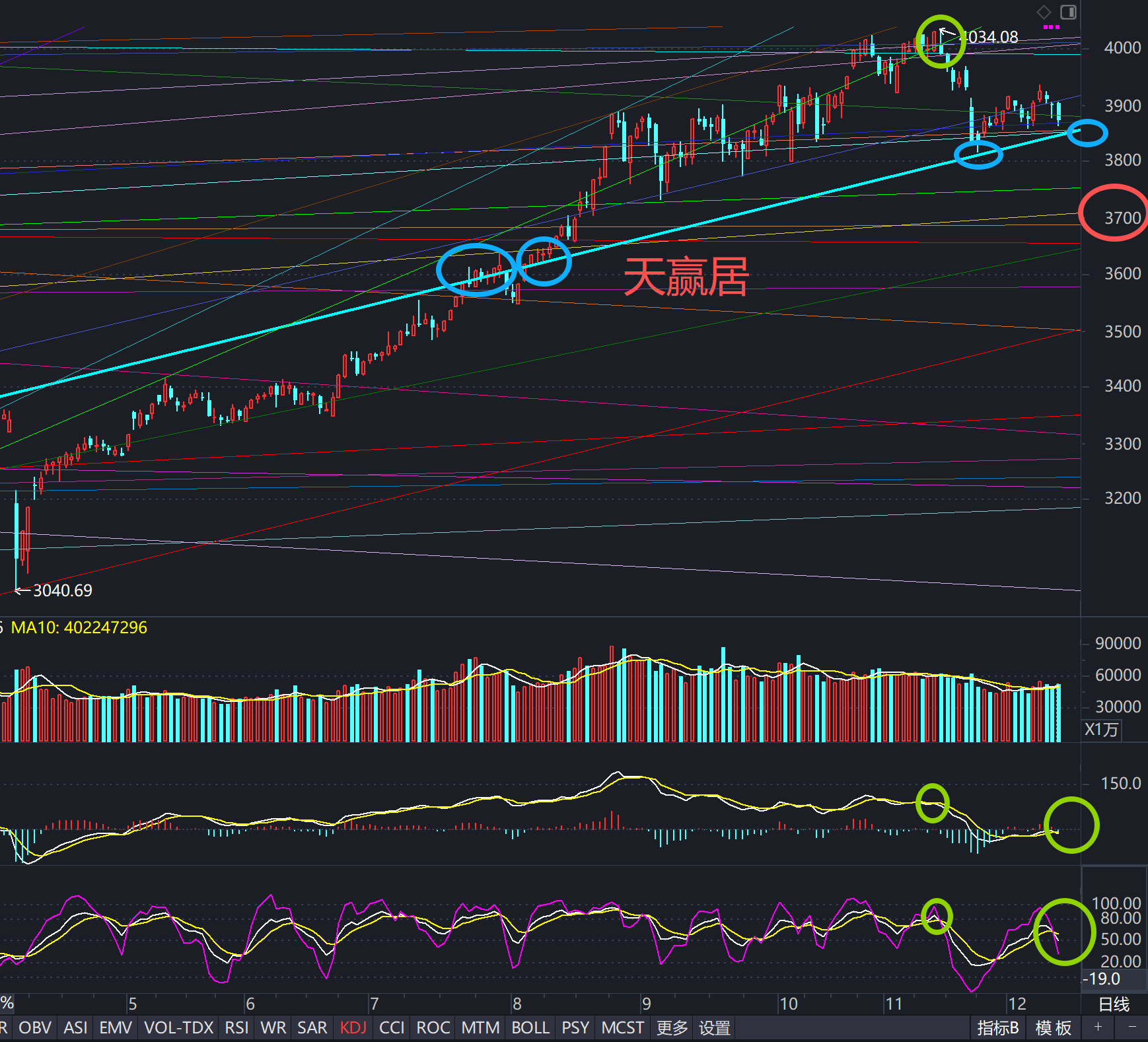 趋势线是天赢居体系的核心,本轮行情两个最重要的趋势线是: