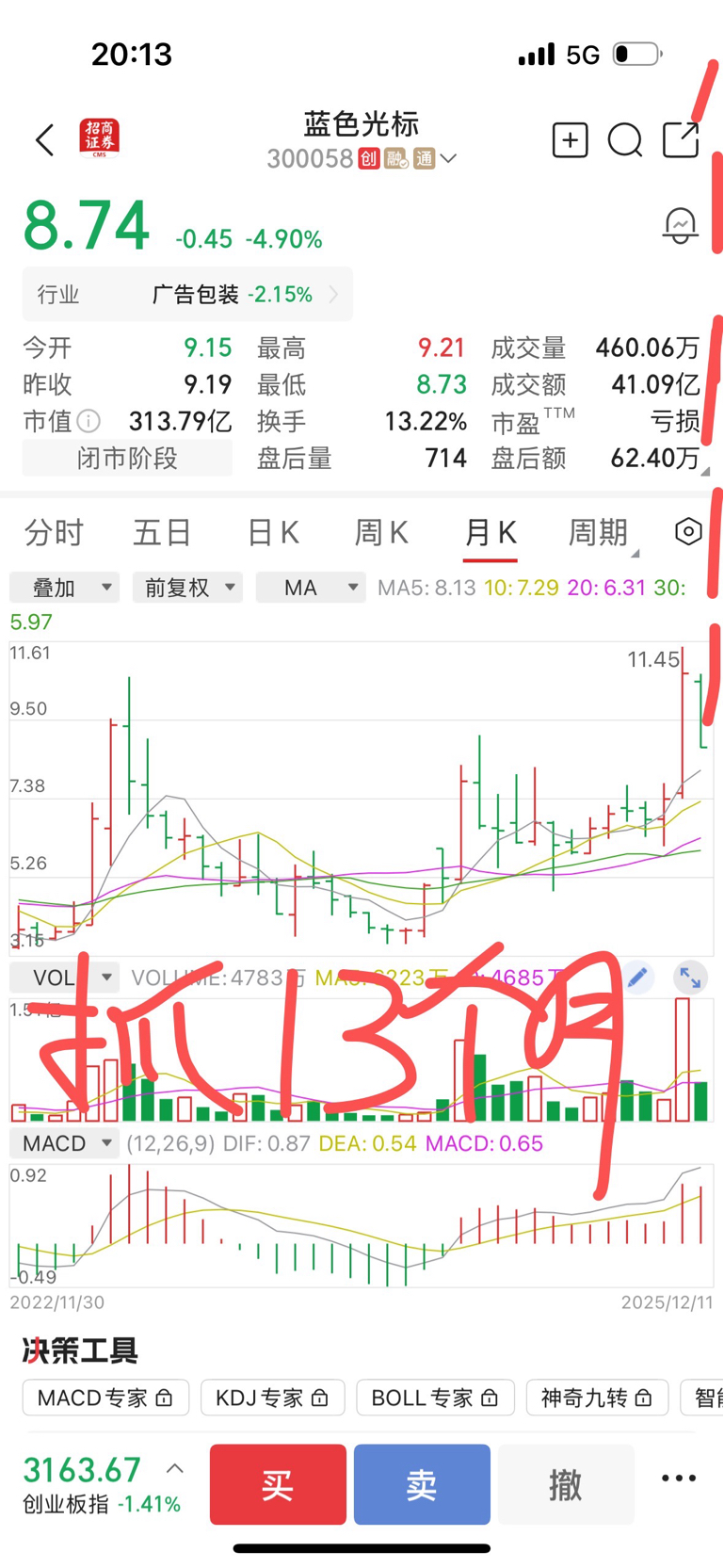 全球股市股票都大涨的,蓝色光标有业绩有题材又是龙头,没有理由不翻倍大涨,前面13天都是暗桩一直在打压收购低价筹码。炒股要大气就再抓13个月赌一定翻倍涨停嘛.............