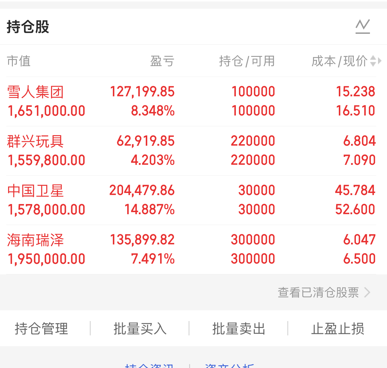 手中持仓