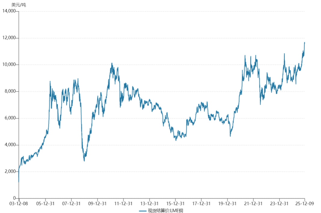 具体来看,瑞木镍钴矿保有镍资源量211.46万吨、钴资源量21.94万吨,2025年上半年实现归属中方利润总额2.3亿元;山达克铜金矿保有铜资源量179.13万吨,同期贡献中方利润1.5亿元;杜达铅锌矿不仅上半年实现1.7亿元中方利润,其北部补充勘探还预计将实现铅锌资源量翻倍,增长潜力显著。更值得关注的是,2025年以来国际铜价持续走高并创历史新高,直接推升了这些矿产资产的内在价值,这也解释了为何中冶铜锌、中冶金吉、华冶杜达的评估增值率分别高达182.99%、183.51%、789.57%。