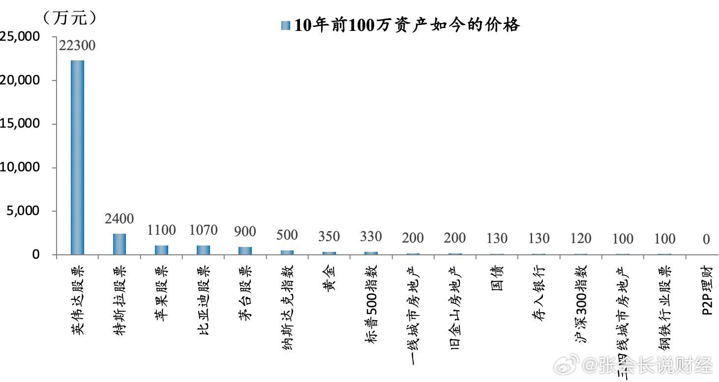 看看10年前,100万资产,如投到下面的标的,如今的价值:比特币2.3亿、英伟达