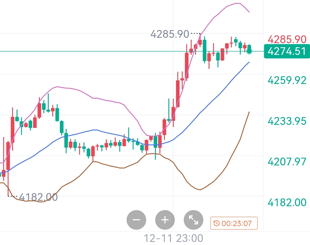 操作参考:黄金4250附近做哆,损4237,目标4320。