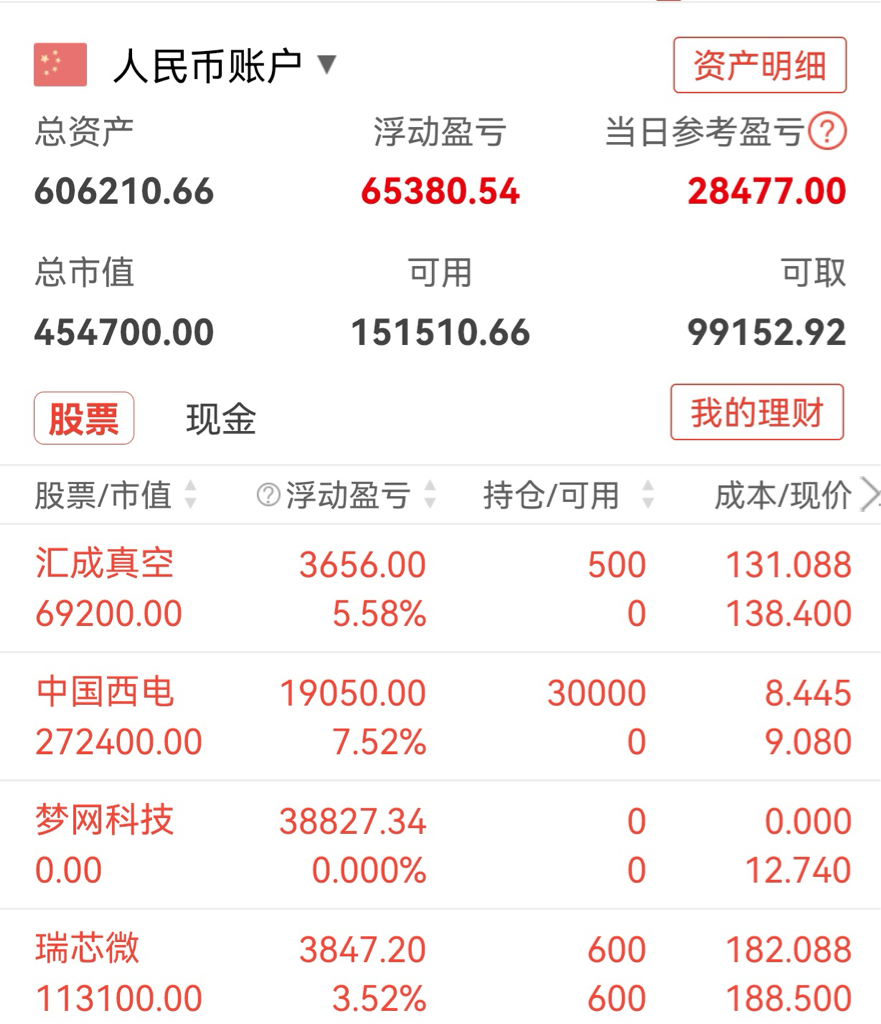 10万进军股市12月12日交易新+中国西电汇成真空收梦网科技