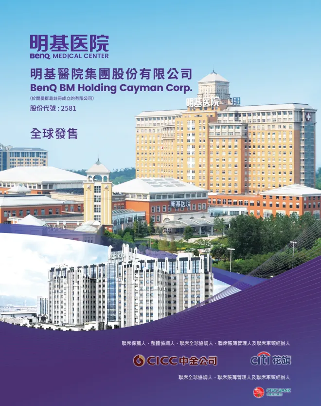 明基医院(02581.HK)发布公告,公司拟全球发售6700万股发售股份,中国香港发售股份670万股,国际发售股份6030万股(以上可予重新分配);2025年12月12日至12月17日招股,预期定价日为12月18日;发售价将为每股发售股份9.34-11.68港元,H股的每手买卖单位将为500股,中金公司及花旗为联席保荐人;预期股份将于2025年12月22日开始在联交所买卖。$明基医院(HK|02581)$