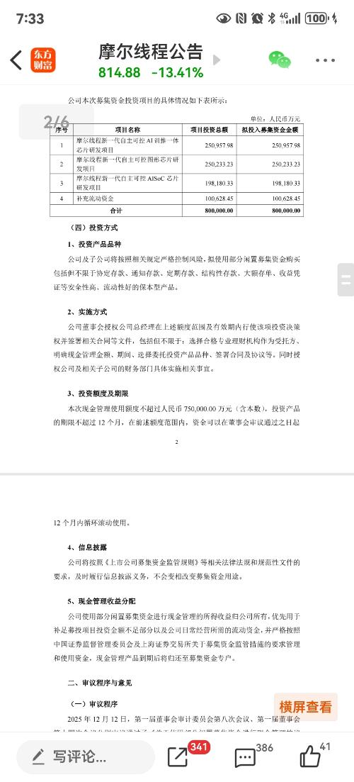 12月12日晚间,摩尔线程(688795.SH)发布公告,拟使用不超过75亿元的部分闲置募集资金进行现金管理。