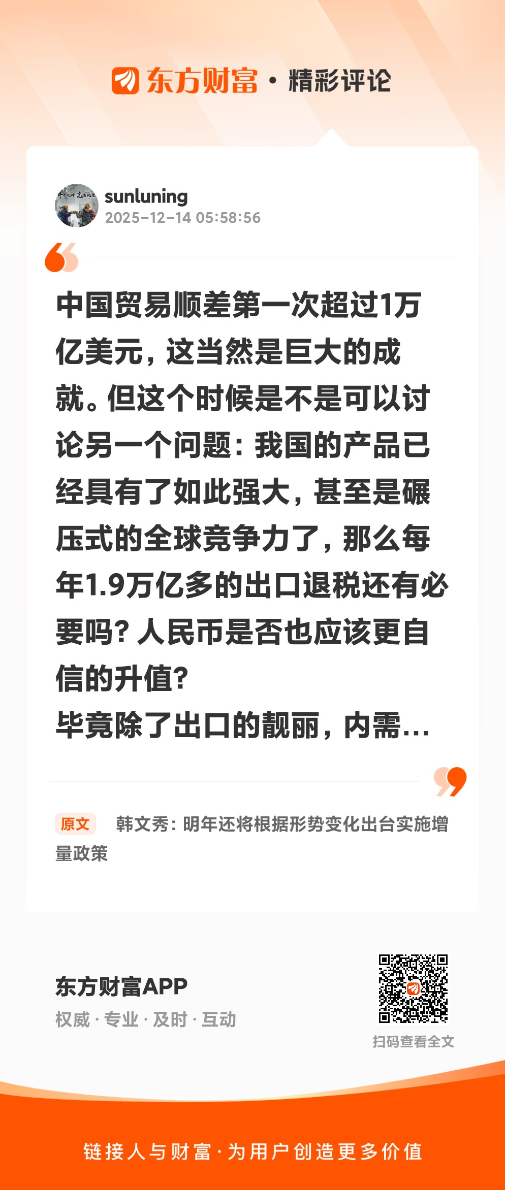 12月13日,中央财办分管日常工作的副主任、中央农办主任韩文秀在2025-2026中国经济年会上表示,做好明年经济工作,要坚持稳中求进,提质增效,加大逆周期和跨周期调节,切实提升宏观经济治理效能。去年9月26日中央政治局会议以来,先后出台实施了一系列政策措施,明年还将根据形势变化出台实施增量政策。要协同发挥存量政策和增量政策的集成效应,推动经济稳中向好。市场经济很大程度上是预期经济,要健全预期管理机制,做好经济宣传和舆论引导,及时回应,及时回应市场关切,有效提振社会信心。