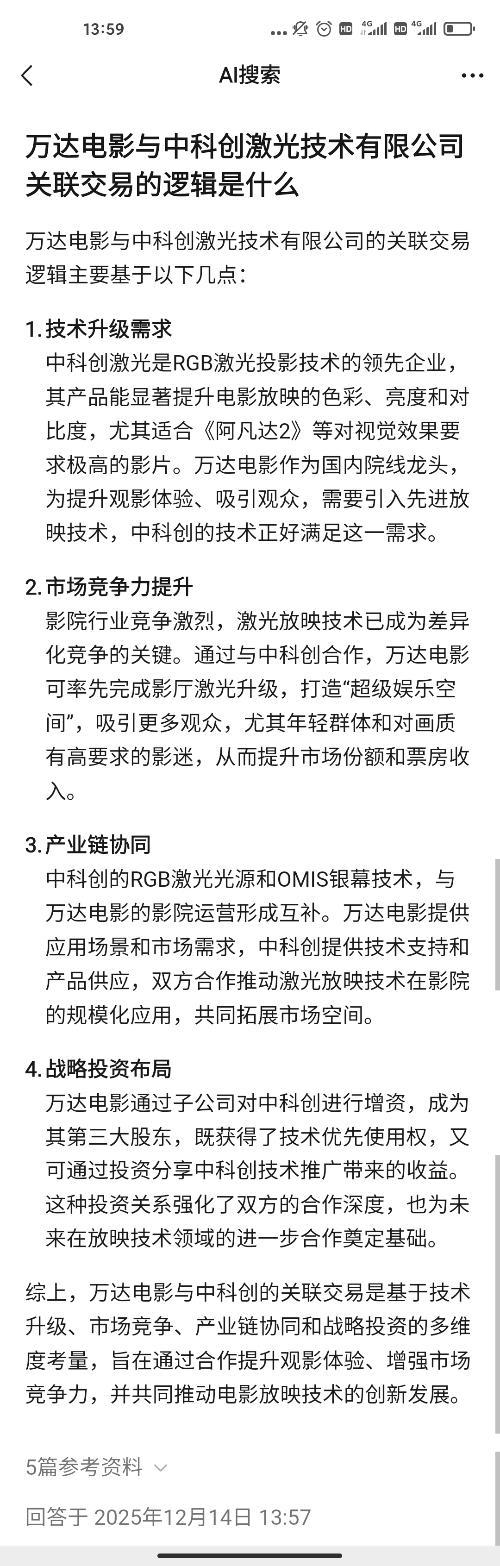 根据公司与中科创签署的《中科创 RGB 激光光源租赁框架协议》,双方约定在合同期限内完成公司所需影城的放映机激光光源改造,公司向中科创租赁RGB 激光光源设备,按协议约定的结算方式支付相应租金。租赁期内,公司按照该框架协……