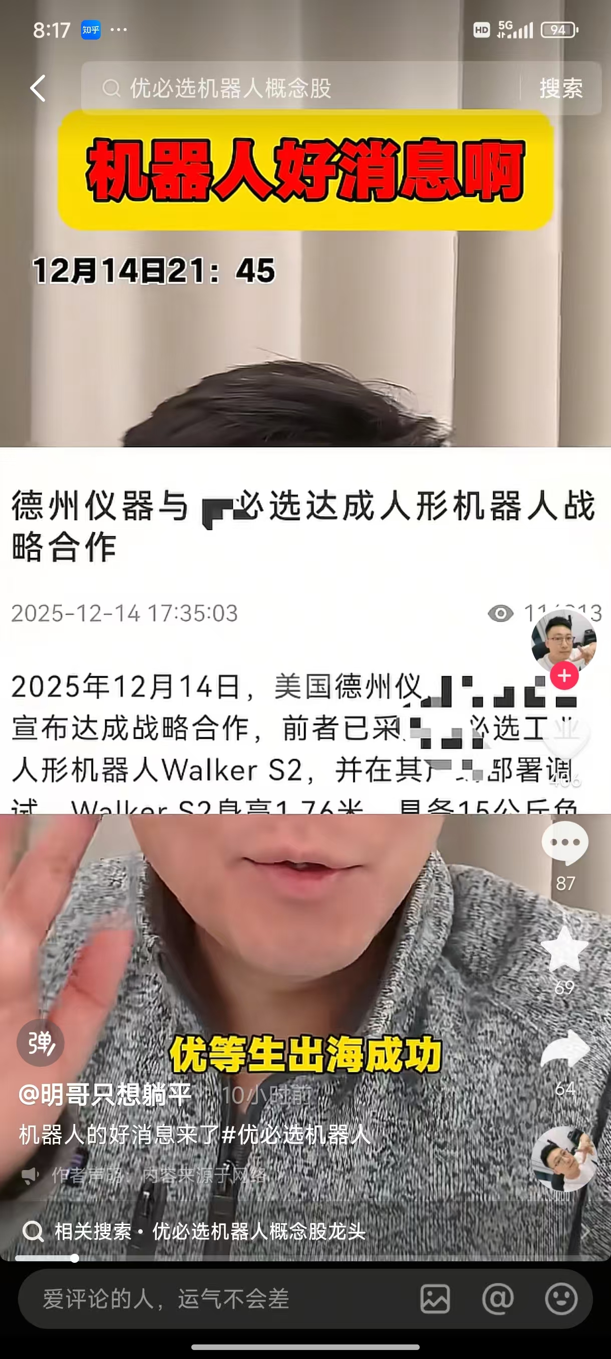 $优必选(HK|09880)$德州仪器(TI)全球半导体大佬,居然采购优必选Walker S2进自家产线!半导体制造可是工业精度的天花板,这波相当于给优必选发了张“扛造认证”。技术落地实锤,工业革命真要来了?