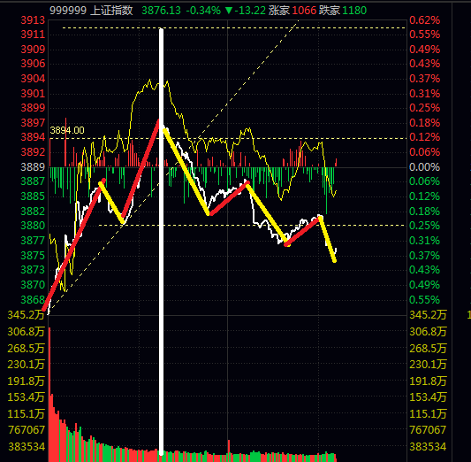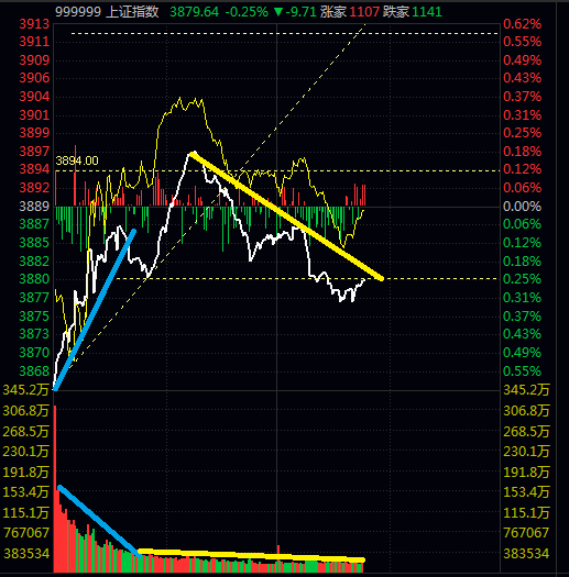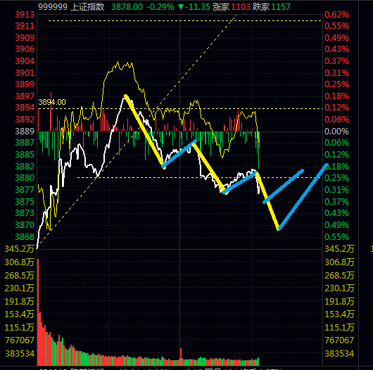 黄白线再次交叉分化,黄线再次领先,直观早盘----迷乱