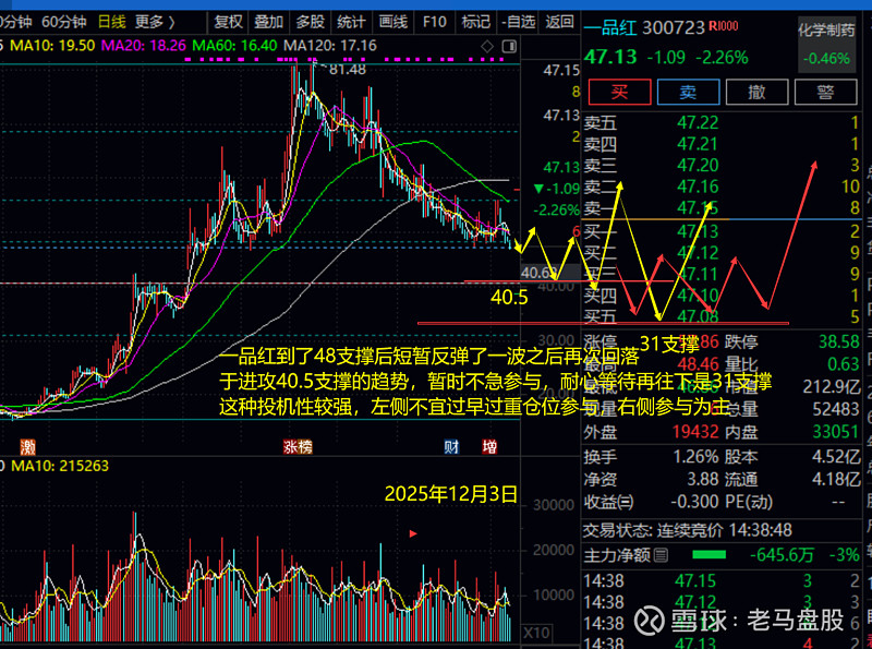 今天创新药被一品红带下来了。前面说过几个投机性较强的创新药代表,$广生堂(SZ300436)$ $舒泰神(SZ300204)$ 还有$一品红(SZ300723)$ ,一品红海外权益被收购,导致估值大幅缩水,还好保留了国内权益,如果这次资金能帮助更快商业化,也是不幸中的万幸了。技术上看,一品红跌破了41关键支撑,原本计划是41接货的,目前基本面改变,且已经下破,后面参考34.5和31支撑