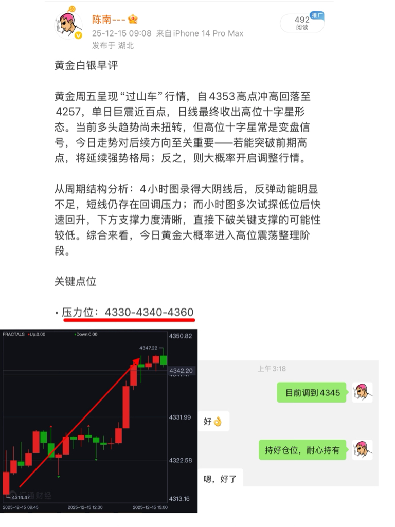 预判与行情同频共振,金价应声上行,实盘落地从容落袋。
