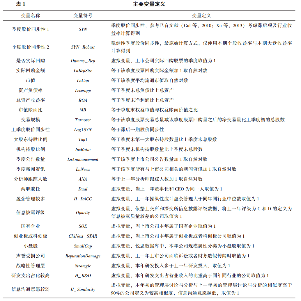 研究基于2017年第一季度至2021年第三季度的沪深A股数据,构建了超过6.5万个“公司—季度”观测样本,通过计量模型分析股票回购对股价同步性的影响。