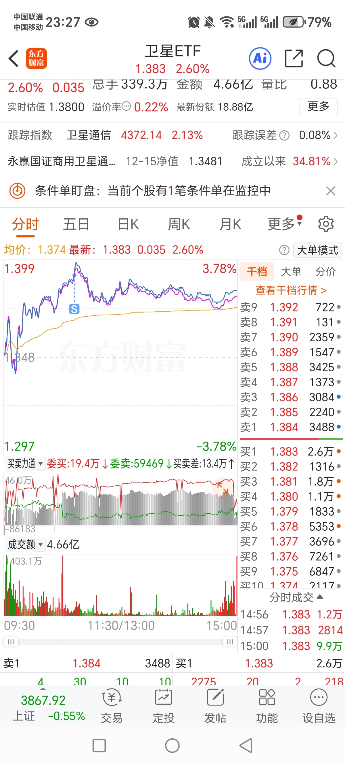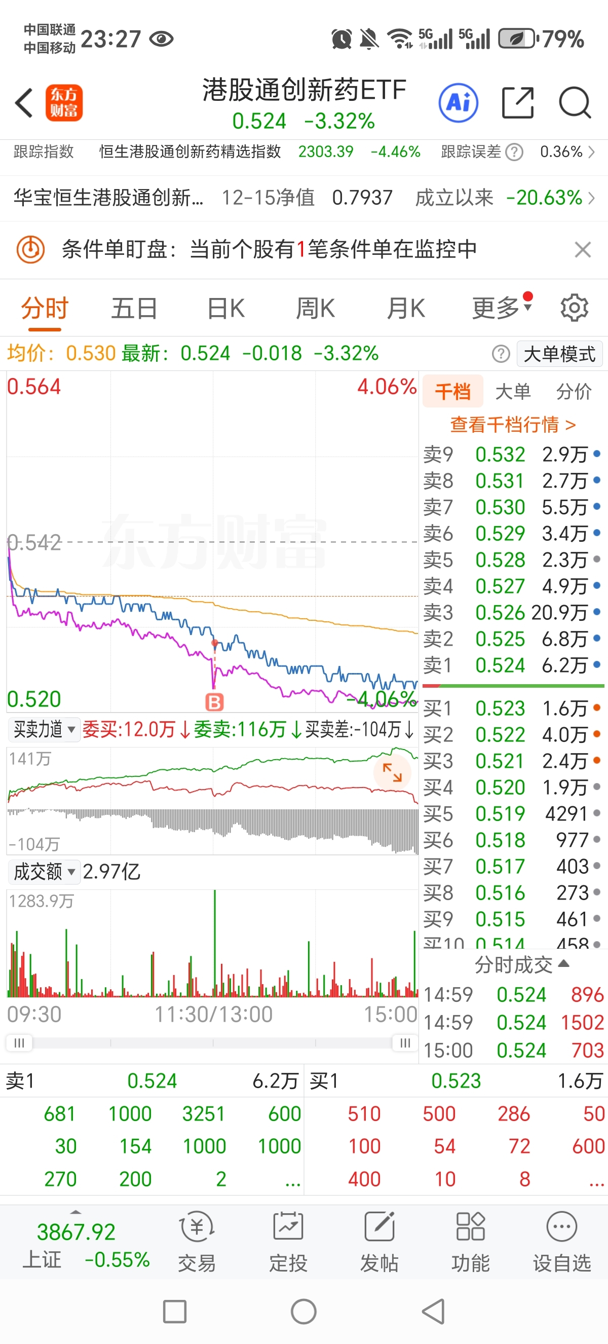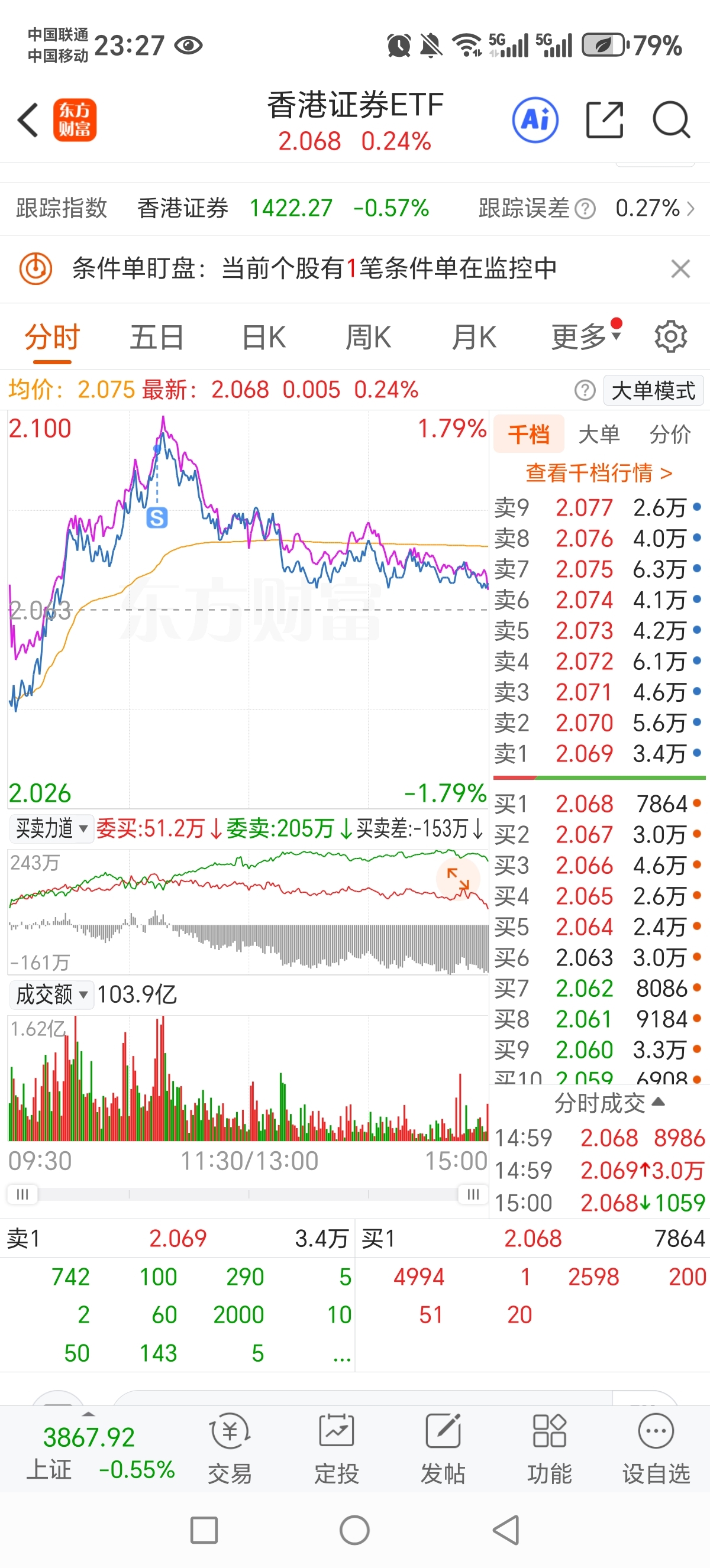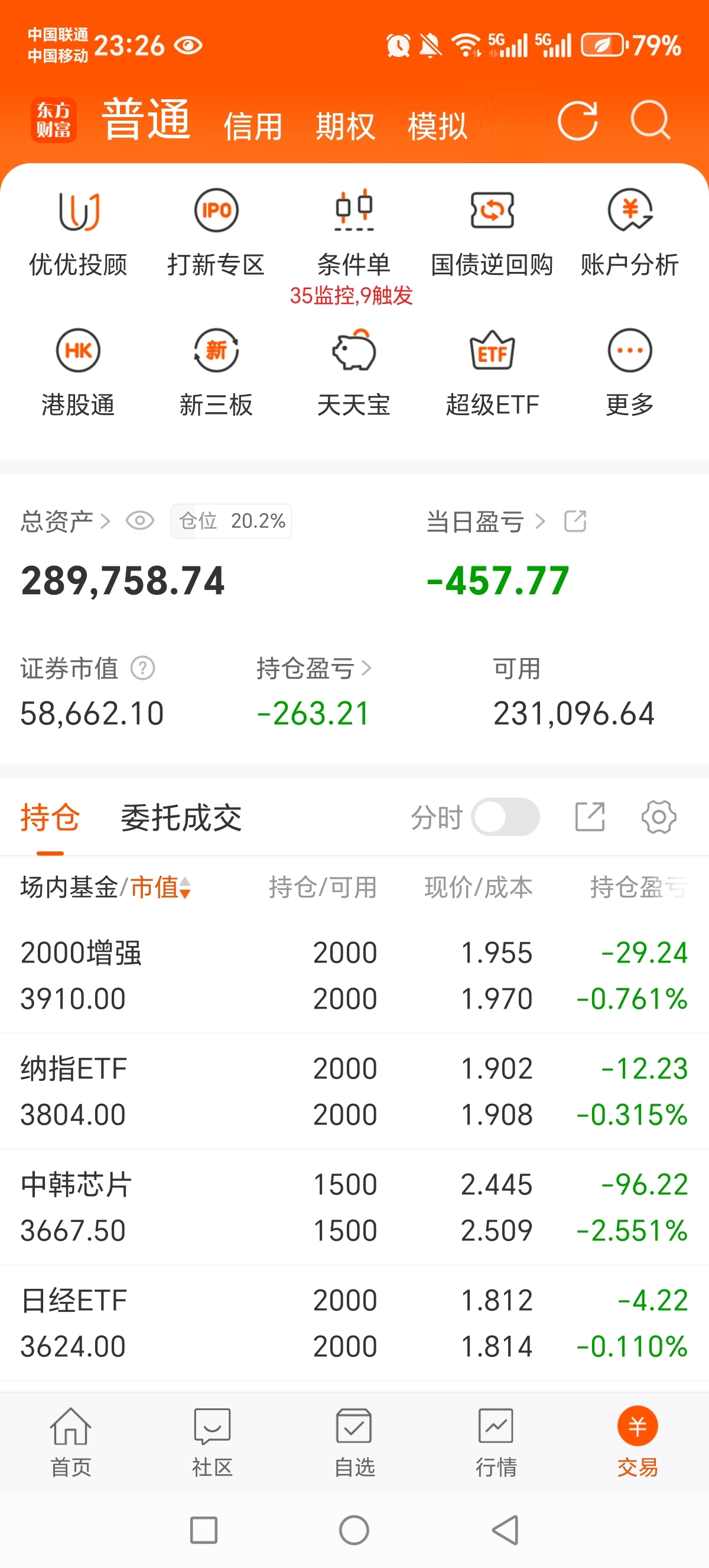 仓位20.2%,35个条件单成交了9个,网格卖出:黄金、香港证券、300增强、卫
