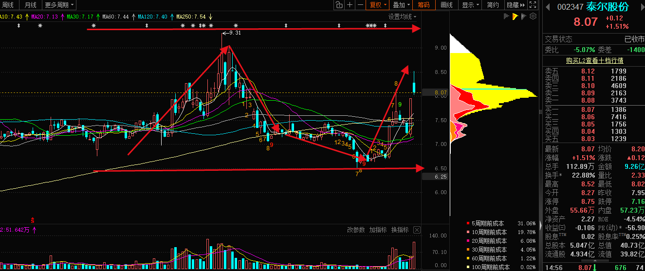 三、泰尔股份:高位放量回撤,5 日线是 “生死线”