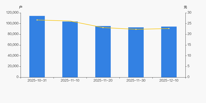 2025年10月31日至今,公司股东户数显著下降,区间跌幅为17.40%。2025年10月31日至2025年12月10日区间股价下降14.98%。