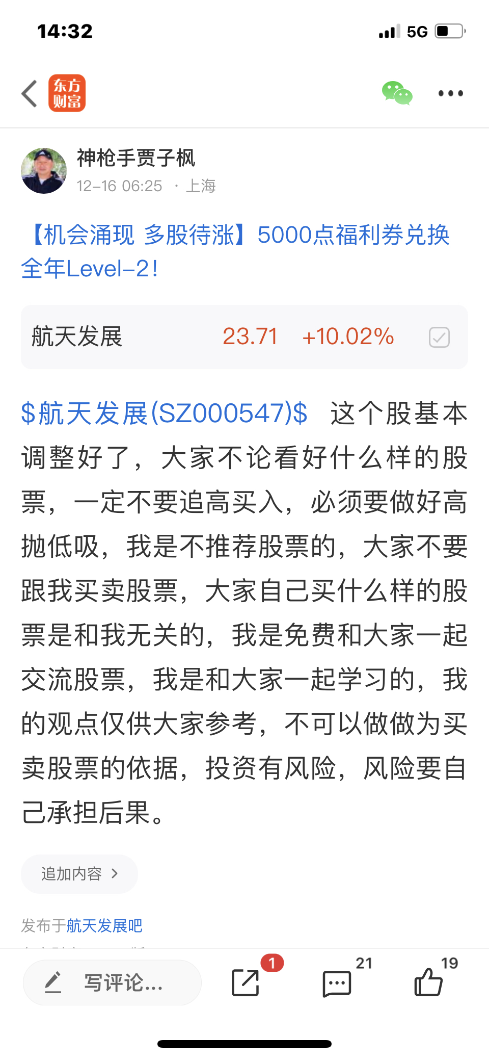 大家看看我早上在文字里写的,我是看好航天板块的,