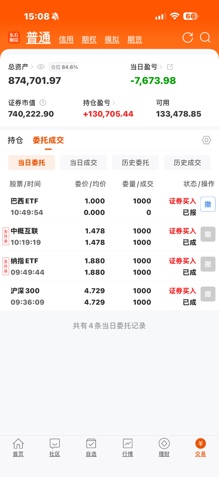 定投第796天(2025年12月16日)今日盈亏:亏7673元条件单买入:中概互