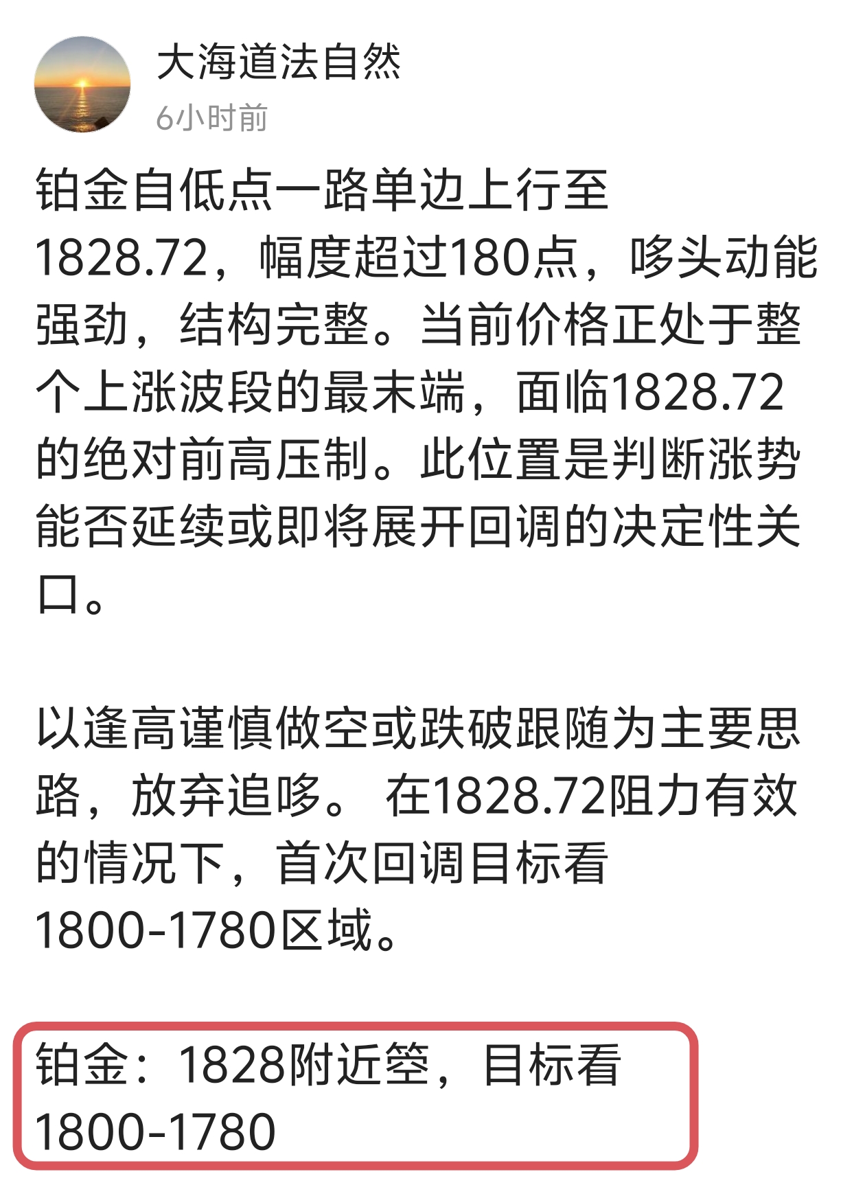 铂金:早间上涨波段末端受到前高压制,直接高位开箜!1828进场的空单,最低干到1