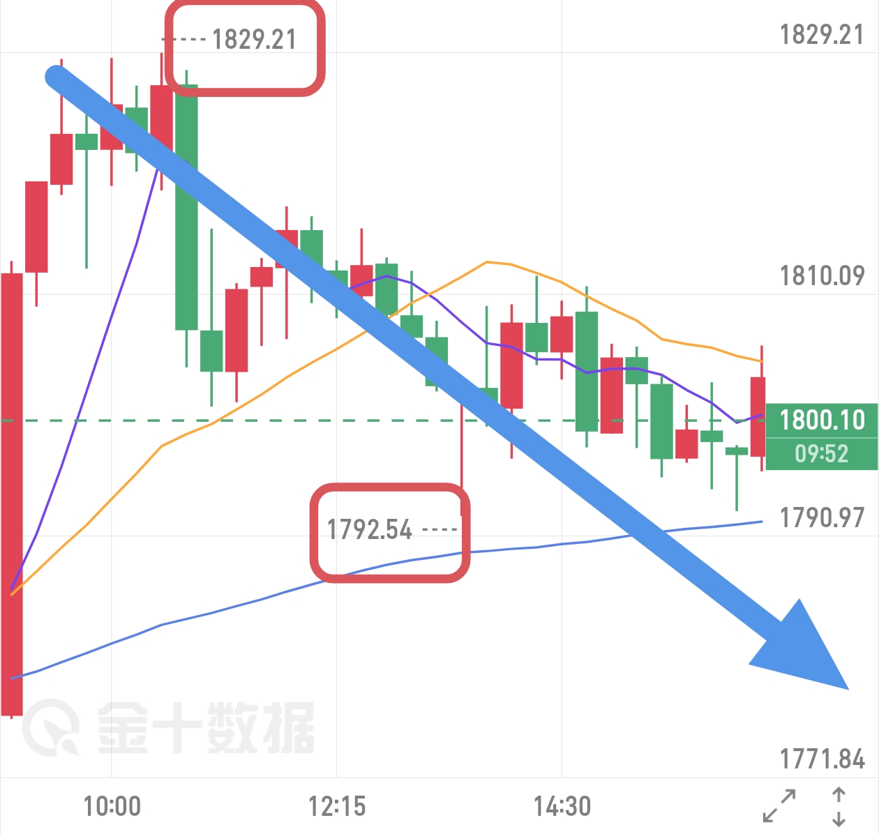 铂金:早间上涨波段末端受到前高压制,直接高位开箜!1828进场的空单,最低干到1792,一波就拿下36点大肉,思路完全兑现!