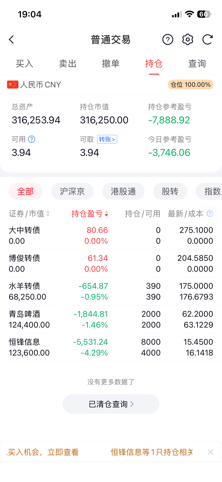 补了6000在里面,明天留出来补仓的