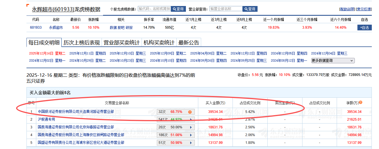 我们先看看龙虎榜的数据如下: