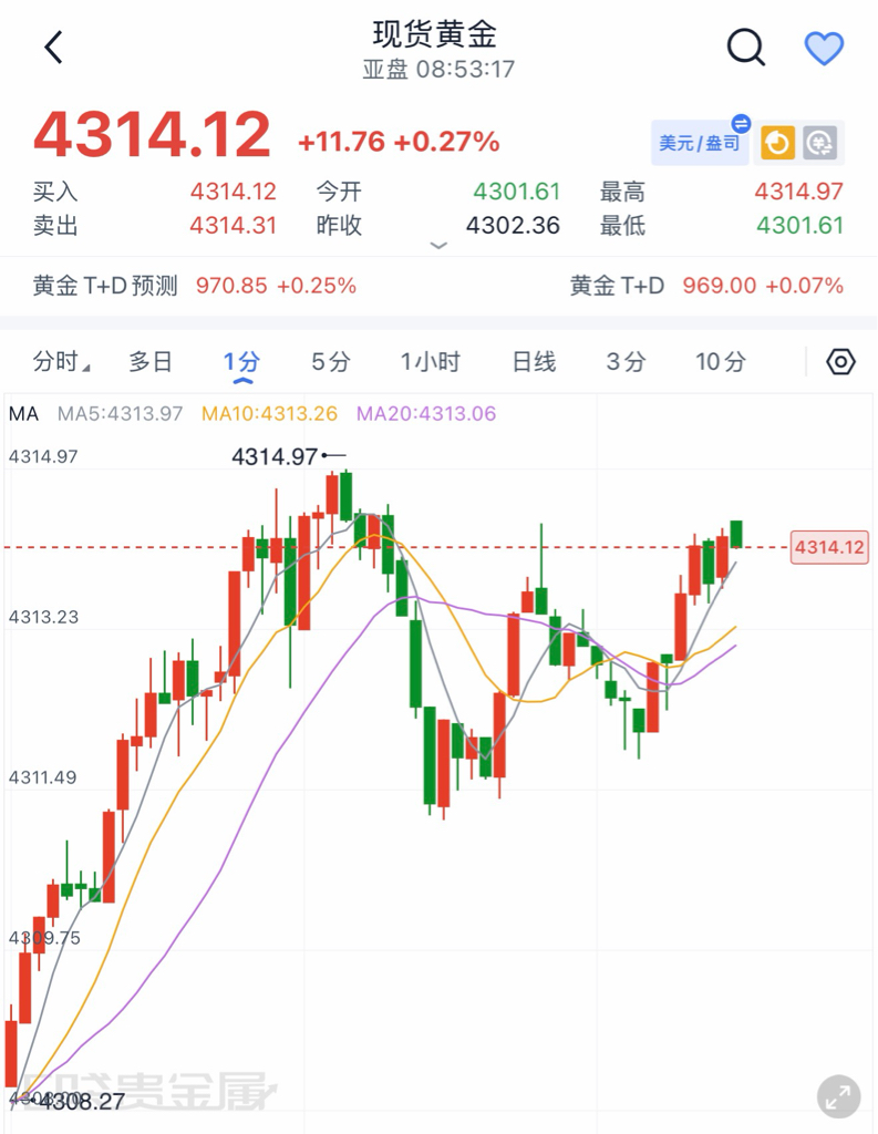 大家早上好,昨晚黄金冲高至4330一线附近后,开始回落,今天是否继续延续。
