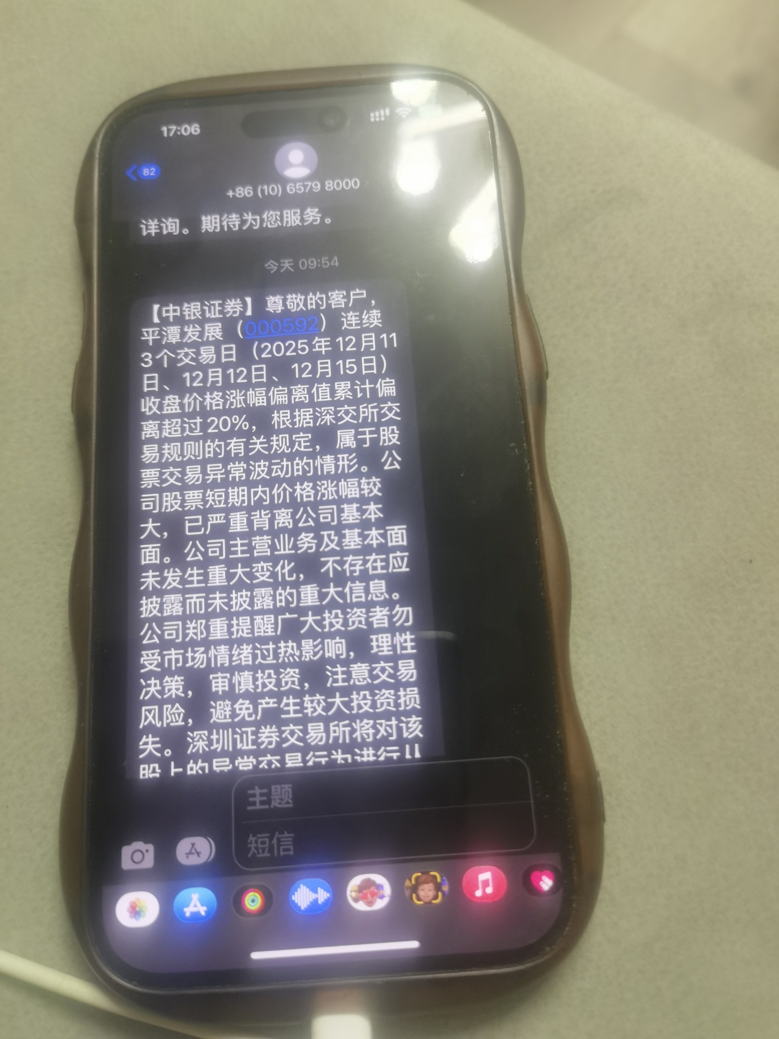我在中银开户的有短信提醒!自从有短信提醒后,盘内就就恐慌了!东方我还有个账户,就没有短信!今天没跑,格局了!盘中加了两次仓,第一次加早了!