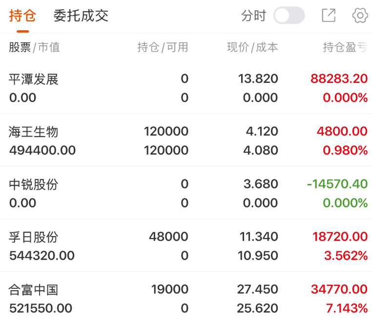 合富中国、今日低开后快速走高,随后维持高位震荡,走势和预期基本契合。量能较前期保持活跃,与拉升节奏有效配合,低位筹码锁定性良好,无大规模出逃迹象。股海小茶语A,开盘后多头主动发力拉升,扭转低开弱势,空方抛压被逐步消化,延续了前期上升趋势。早盘见其承接、量能与趋势均符合预期,选择博弈一把看能否突破前高,目前走势达标。