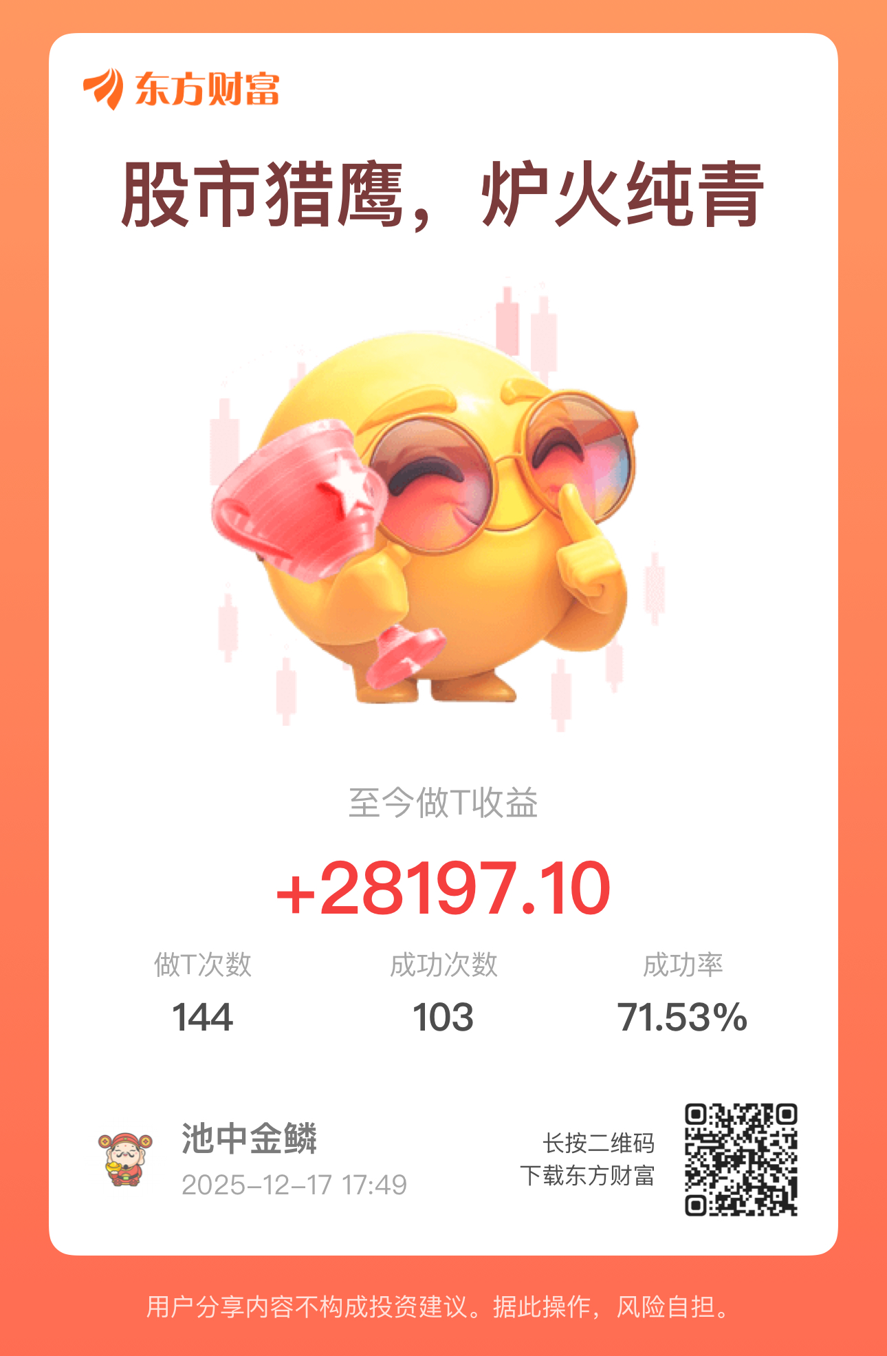 郑重声明:用户在财富号/股吧/博客等社区发表的所有信息(包括但不限于文字、视频、音频、数据及图表)仅代表个人观点,与本网站立场无关,不对您构成任何投资建议,据此操作风险自担。请勿相信代客理财、免费荐股和炒股培训等宣传内容,远离非法证券活动。请勿添加发言用户的手机号码、公众号、微博、微信及QQ等信息,谨防上当受骗!