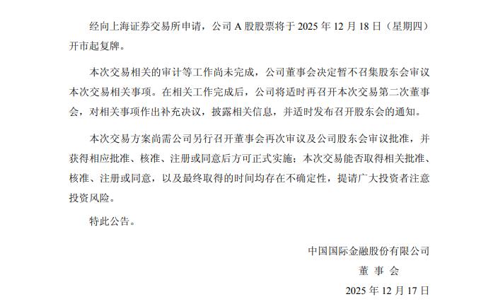 谈及影响,公告称,本次交易有助于中金公司提升综合实力,实现优势互补,优化业务布局,有效提升公司在资本实力、客户基础、综合服务等方面的核心竞争力,顺应金融行业高质量发展要求,打造具有国际竞争力的一流投资银行,推动金融强国建设。