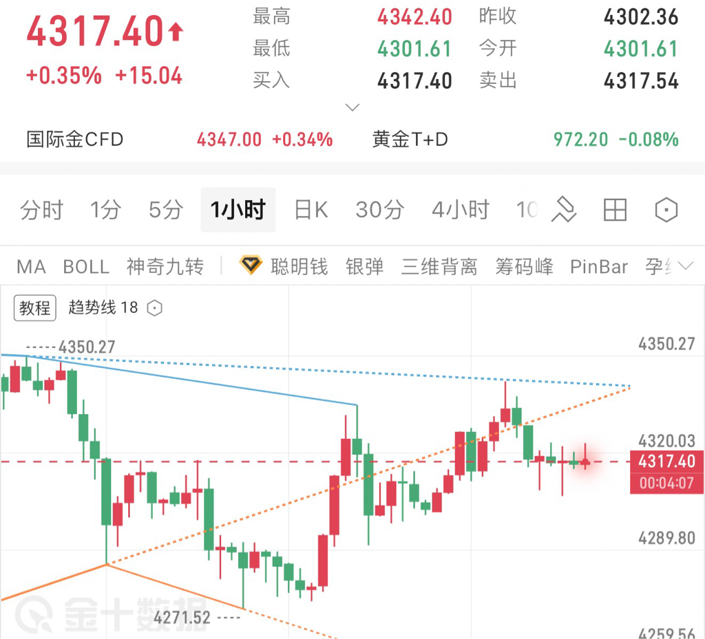 黄金跌势乏力,继续看多,重点关注4360附近。昨日4270进多,4330完美止盈60点,低点高点精准