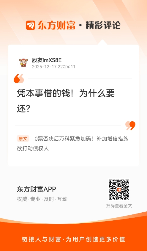 此外,《国际金融报》记者注意到,万科企业旗下的另一只票据“22万科MTN005”将在12月22日召开展期会议。“22万科MTN005”债券余额为37亿元,票面利率3%,兑付日为2025年12月28日。
