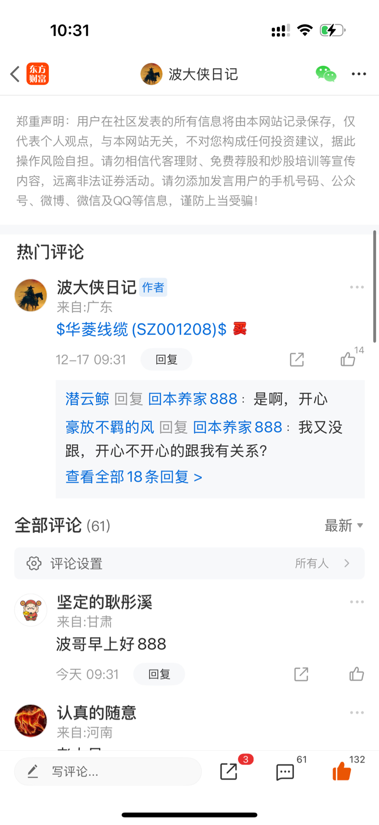 温馨提示: 1.根据《证券法》规定,禁止编造、传播虚假信息或者误导性信息,扰乱证券市场;2.用户在本社区发表的所有资料、言论等仅代表个人观点,与本网站立场无关,不对您构成任何投资建议。用户应基于自己的独立判断,自行决定证券投资并承担相应风险。《东方财富社区管理规定》