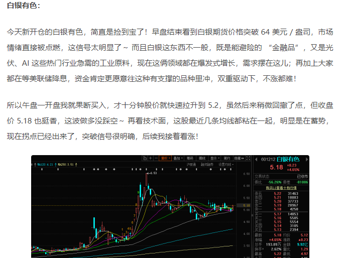 虽说昨天是因为期货白银上涨才导致该股票午盘上涨的,但是市场叠加白银库存创十年新低(上期所库存不足900吨),推动银价上行。工业需求中,光伏用银量占比25%,新能源汽车用铜量增长12.7%,支撑长期基本面,但是技术面均线都粘在一起,明显是在蓄势,现在拐点已经出来了,突破信号很明确,短期小君还是看涨。