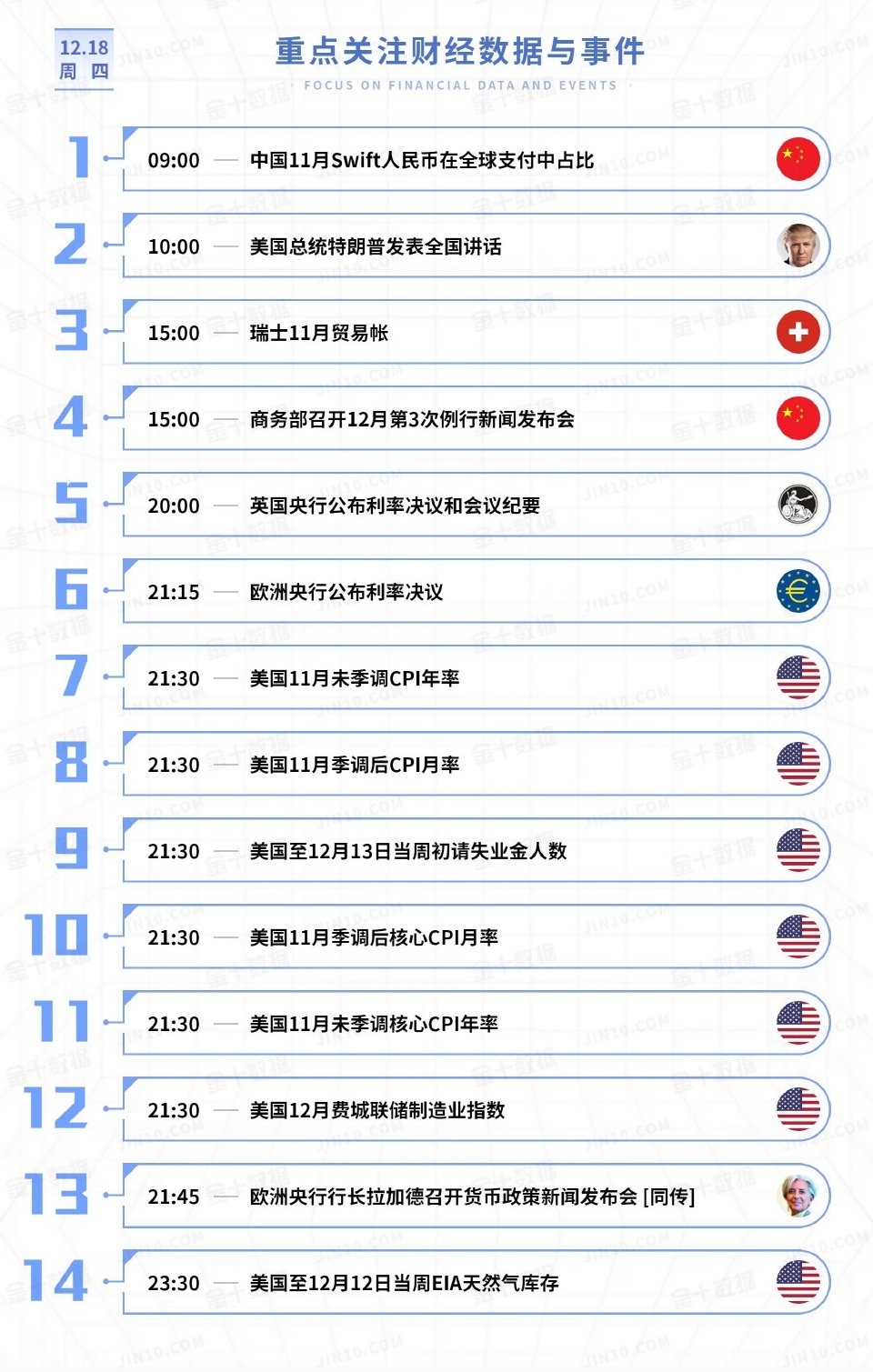 12.18 周四 今日重点关注财经数据与事件!