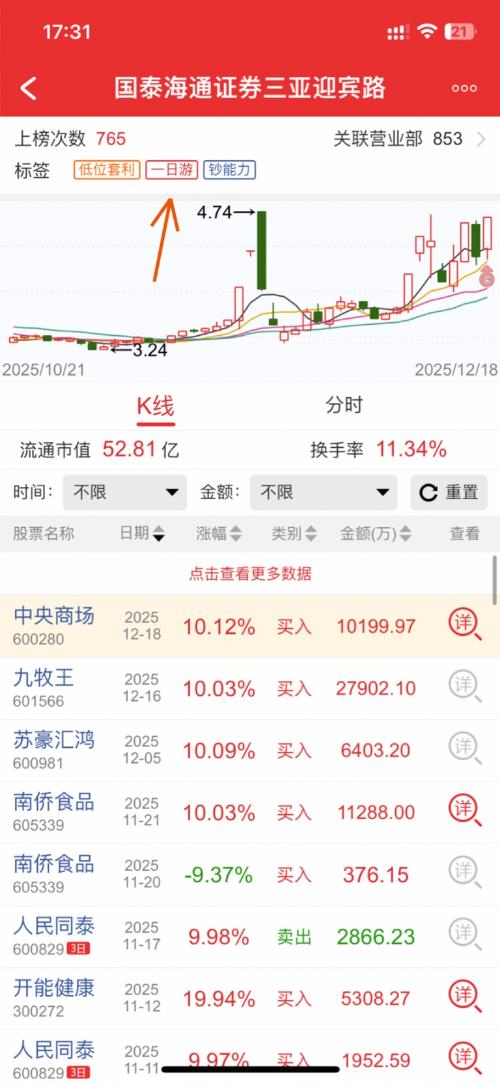 交易所2025年12月18日公布的交易公开信息显示,中央商场因成为有价格涨跌幅限制的日收盘价格涨幅偏离值达到7%的前五只证券上榜。中央商场当日收报4.68元,涨跌幅10.12%,偏离值9.96%,换手率11.34%,成交额5.85亿。