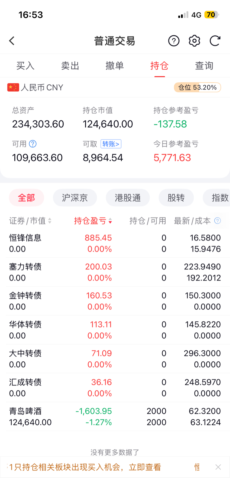 今天减仓,取出来一部分钱塞力昨天设置条件单193.5卖出恒锋走势符合逻辑,盈利出