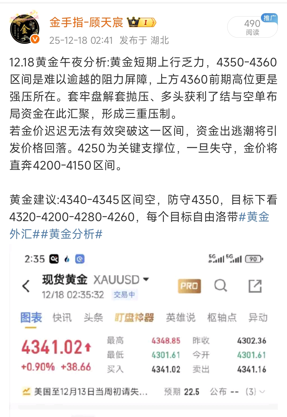 黄金坚定自己,4345空,目前4320,25点