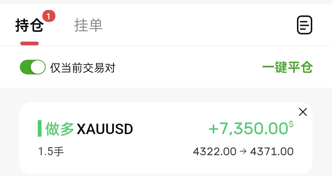 黄金,迎接暴力拉升!于 4322 的多,目前已持有 49 个点!这就是波段的魅力!