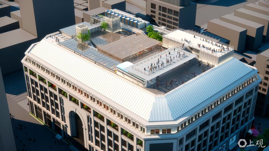 高区将构建“外滩之眼”复合空间,充分挖掘屋顶景观优势,建造城市级的观景平台,进一步强化与外滩区域的空间联动。同时,注入品牌策展、艺术展览、娱乐体验等多元化业态与夜间消费新场景,打造南京路步行街夜生活高地。