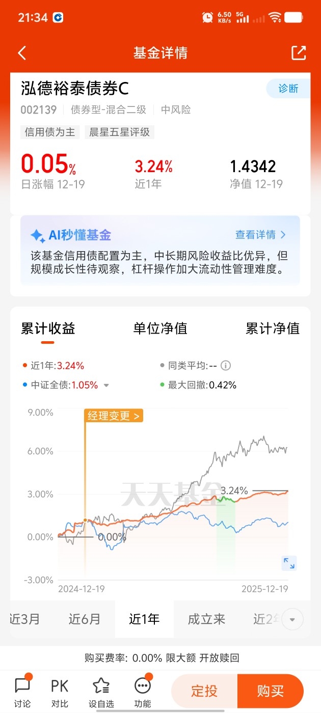 #2025即将收官 明年怎么投?,2025即将收官 明年怎么投?# 年底还是配置债券,找到一只短债替代产品泓德裕泰,比短债收益高,波动也没短债大,最大回撤只有0.42%,震荡市还能一直新高,说明基金经理策略适应性很强